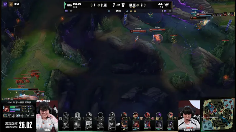 26分钟,Tarzan强开Knight失败,BLG先后击杀Hope与Shanks